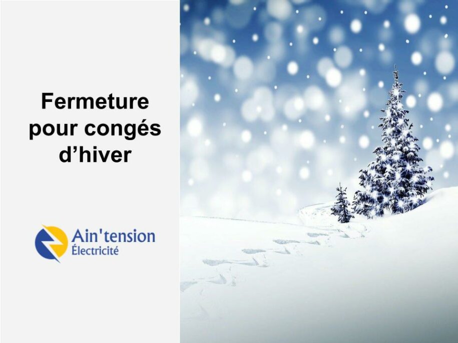 L’entreprise Ain’tension électricité sera fermée du 24/12/2025 au 04/01/2026 inclus pour congés d’hiver.